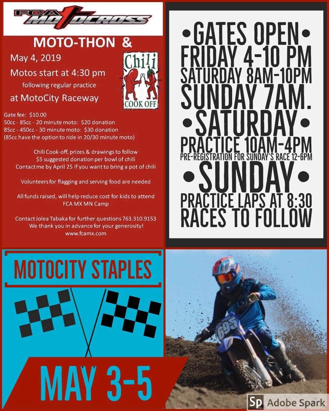 Jessica Noaeill April 29, 2019 MotoCity Raceway Staples, MN Motocross Racing this Weekend: Moto-thon & Chili Cook Off Jessica Noaeill April 29, 2019 Learn more