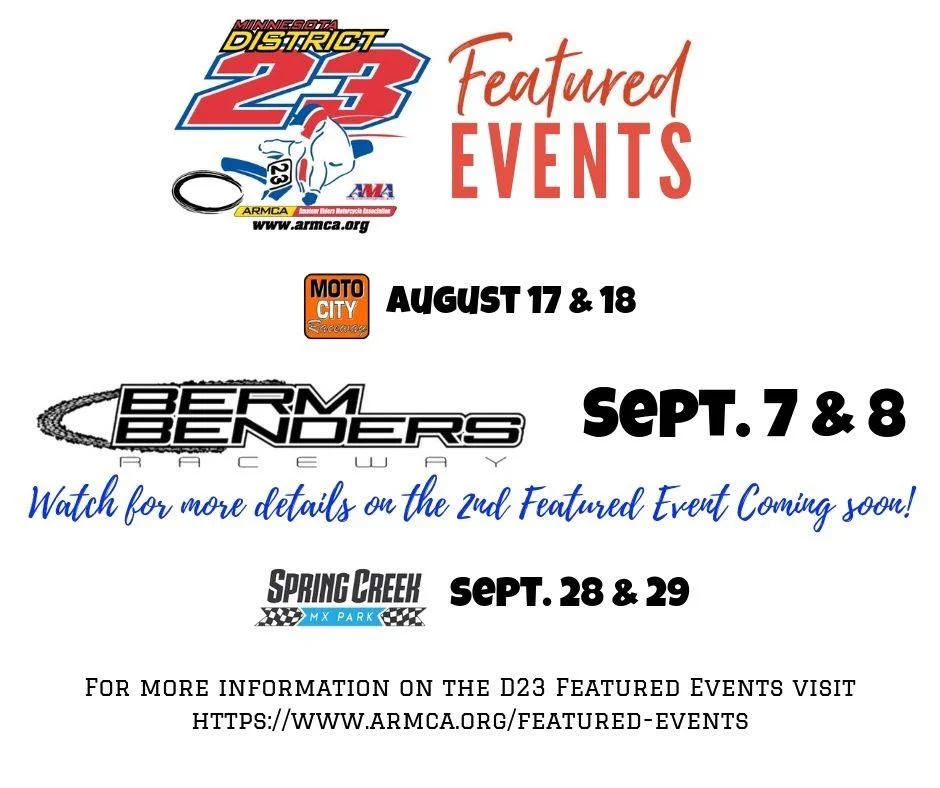 Jessica Noaeill August 13, 2019 District 23 Newsblast: Week of August 12th Jessica Noaeill August 13, 2019 D23 Motocross Featured Events D23 Motocross Featured Event Staples, MN August 17th & 18th Akeley Enduro August 17th & 18th