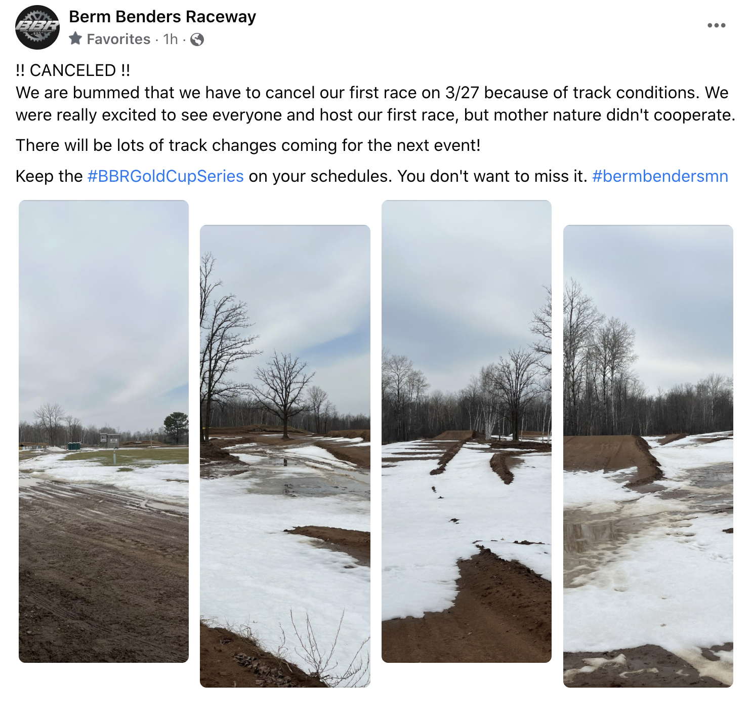 Jessica Noaeill March 21, 2022 CANCELED - Non points MX race at Berm Benders in Mora, MN has been canceled Jessica Noaeill March 21, 2022